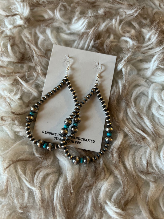 Sterling silver and turquoise Navajo pearl earrings